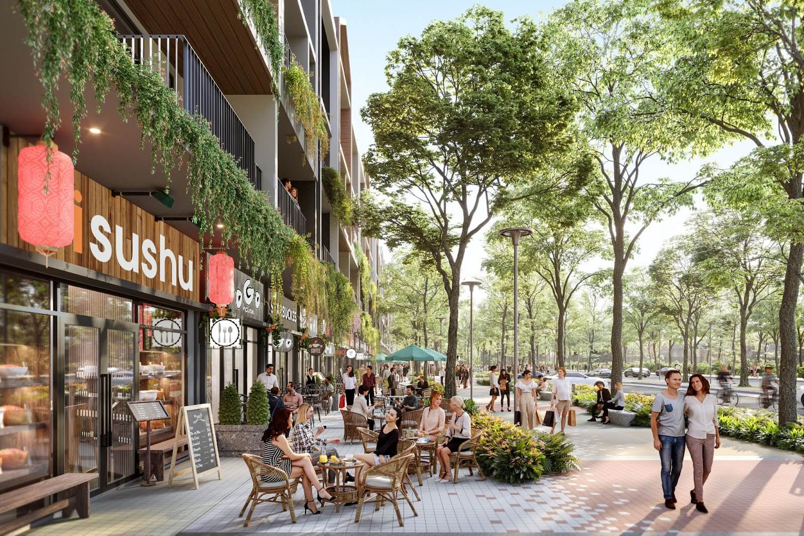 • Mua sắm - ẩm thực - giải trí trong tầm tay: Trải nghiệm không gian mua sắm với đầy đủ các tiện ích trong trung tâm thương mại, siêu thị mini cũng như được áp ứng nhu cầu giải trí với rạp chiếu phim, phổ ẩm thực, cafe, dãy shophouse kinh doanh sầm uất.