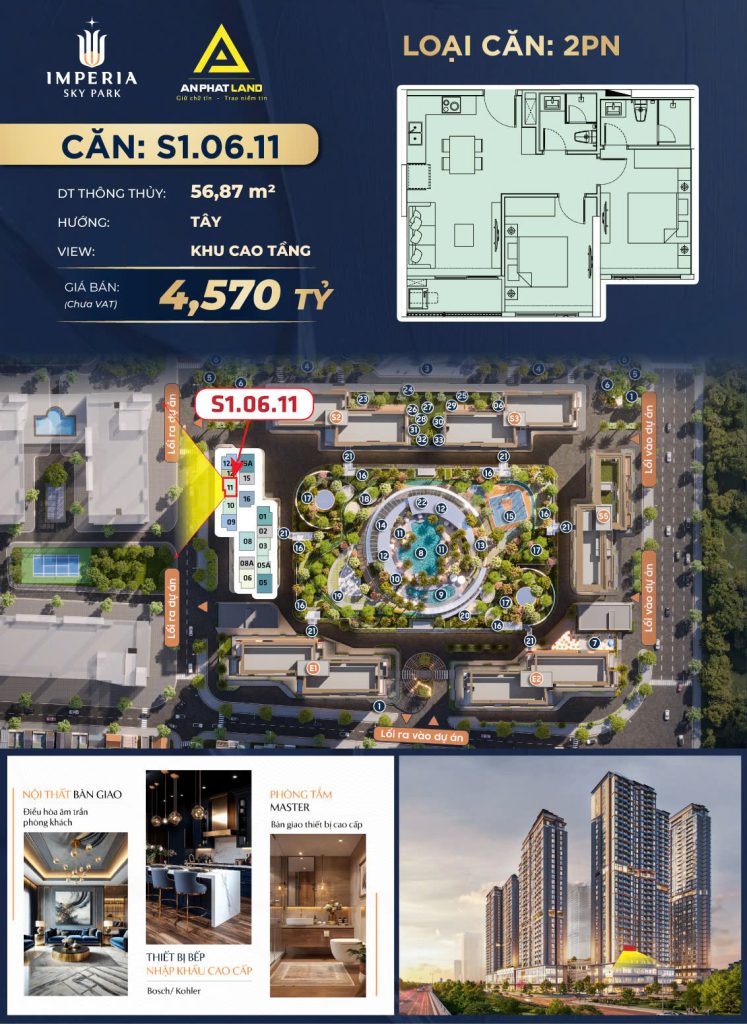 ✔ Tiện ích: Bể bơi 4 mùa, sân Golf, Sky Garden và hệ thống an ninh compound 24/7.